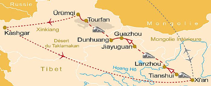 - Les trajets en TGV Xi'an/Tianshui, Lanzhou/Jiayuguan, Liuyuan/Tourfan