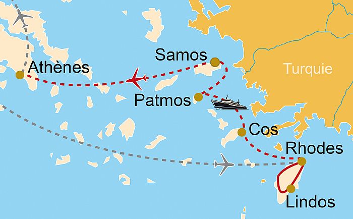 Les îles du Dodécanèse – les douze îles – ont été l’un des fleurons de la civilisation hellénique. Occupées dès l’âge du bronze, elles furent ensuite colonisées par les Doriens, et le passé ancien y survit à travers les vestiges de nombreux monuments, ceux de l’acropole de Rhodes, les temples d’Athéna et d’Apollon de Lindos et de Camiros ou le sanctuaire d’Asclépios édifié à Cos, la patrie d’origine d’Hippocrate. L’Héraion de Samos et le tunnel d’Eupalinos qui alimentait en e... lire plus